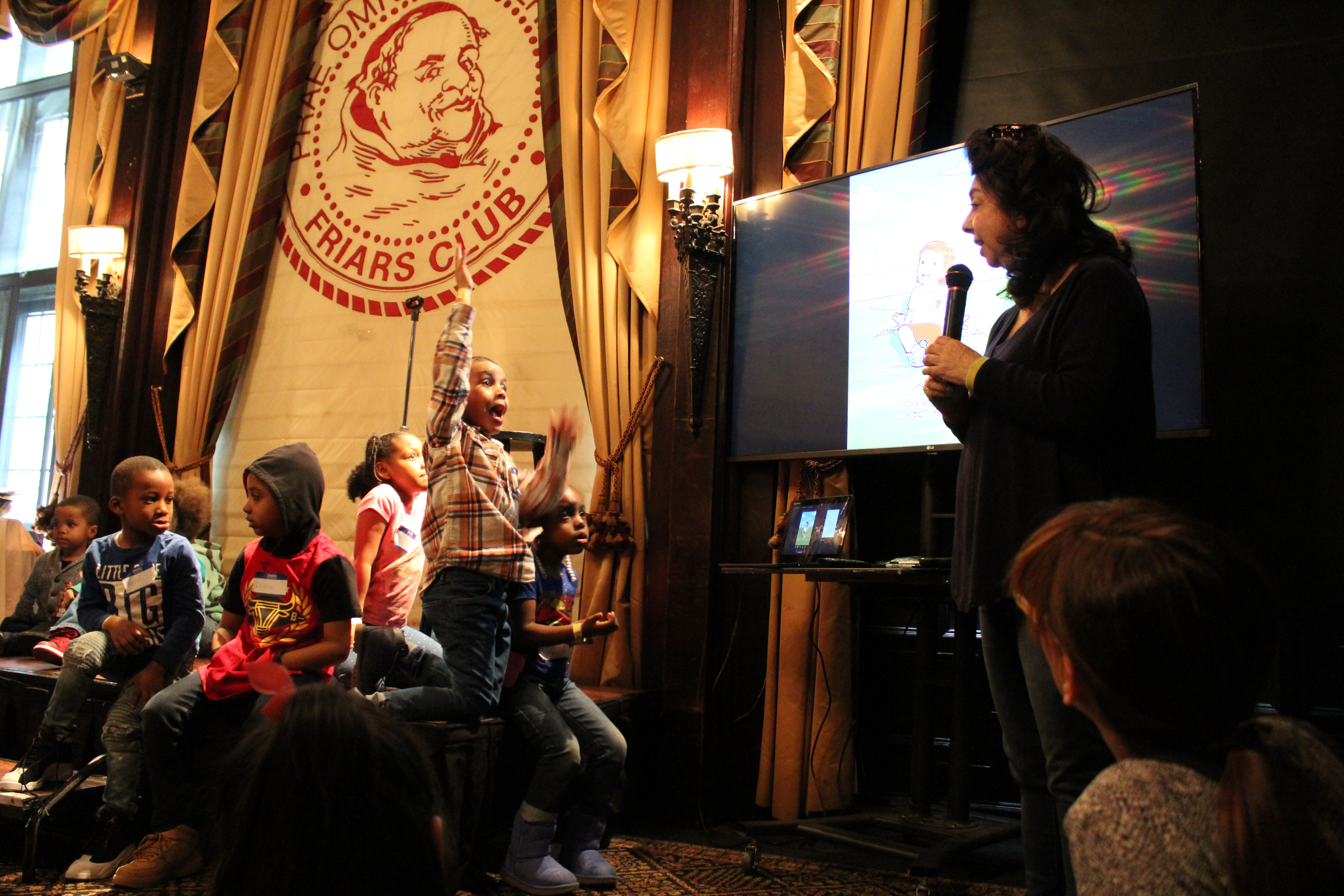 The Friars Club hosted dozens of kids from Homes for the Homeless this Saturday for a reading of What’s Making Walter C. Laugh? by Ginny Jordan.