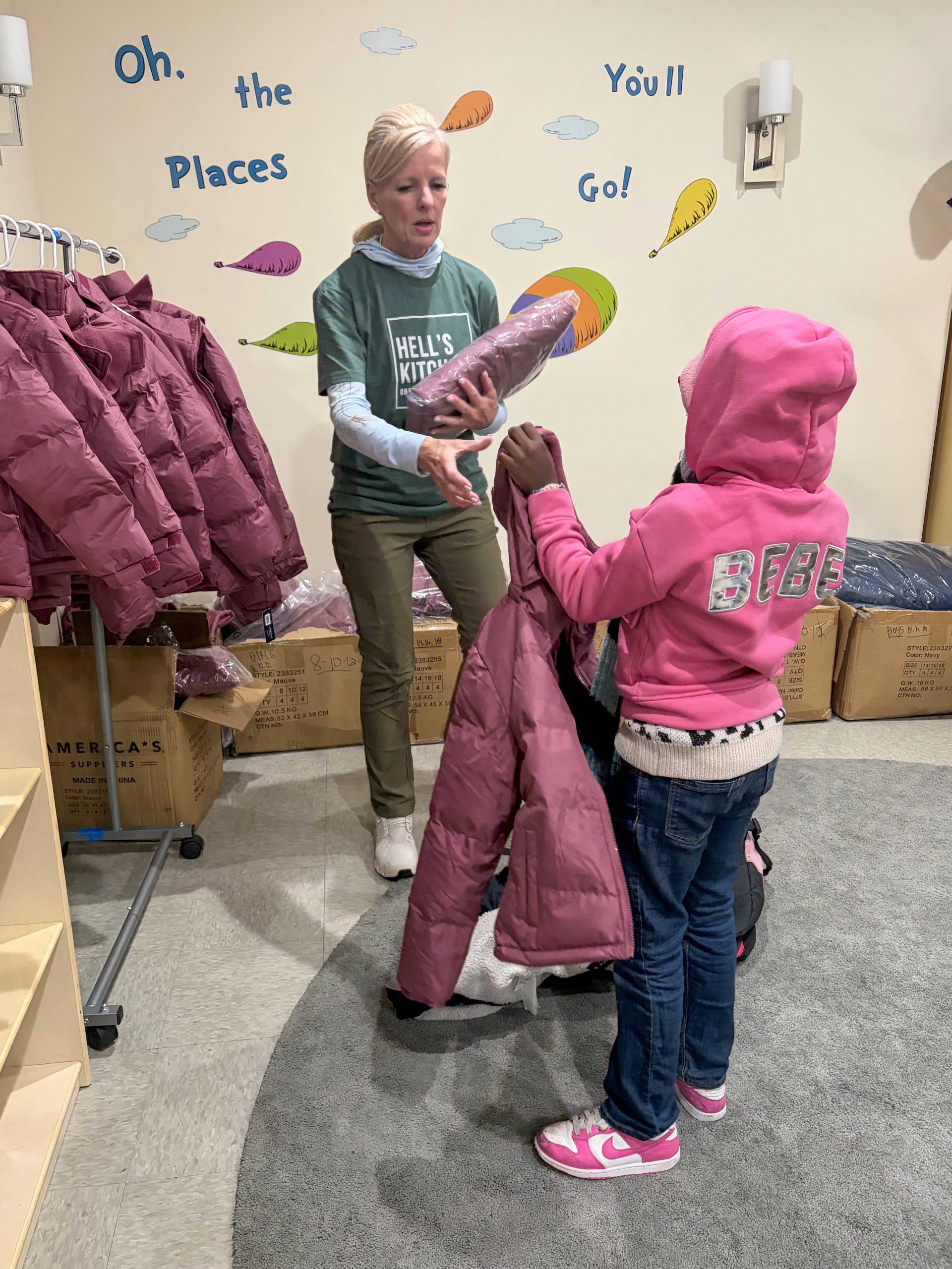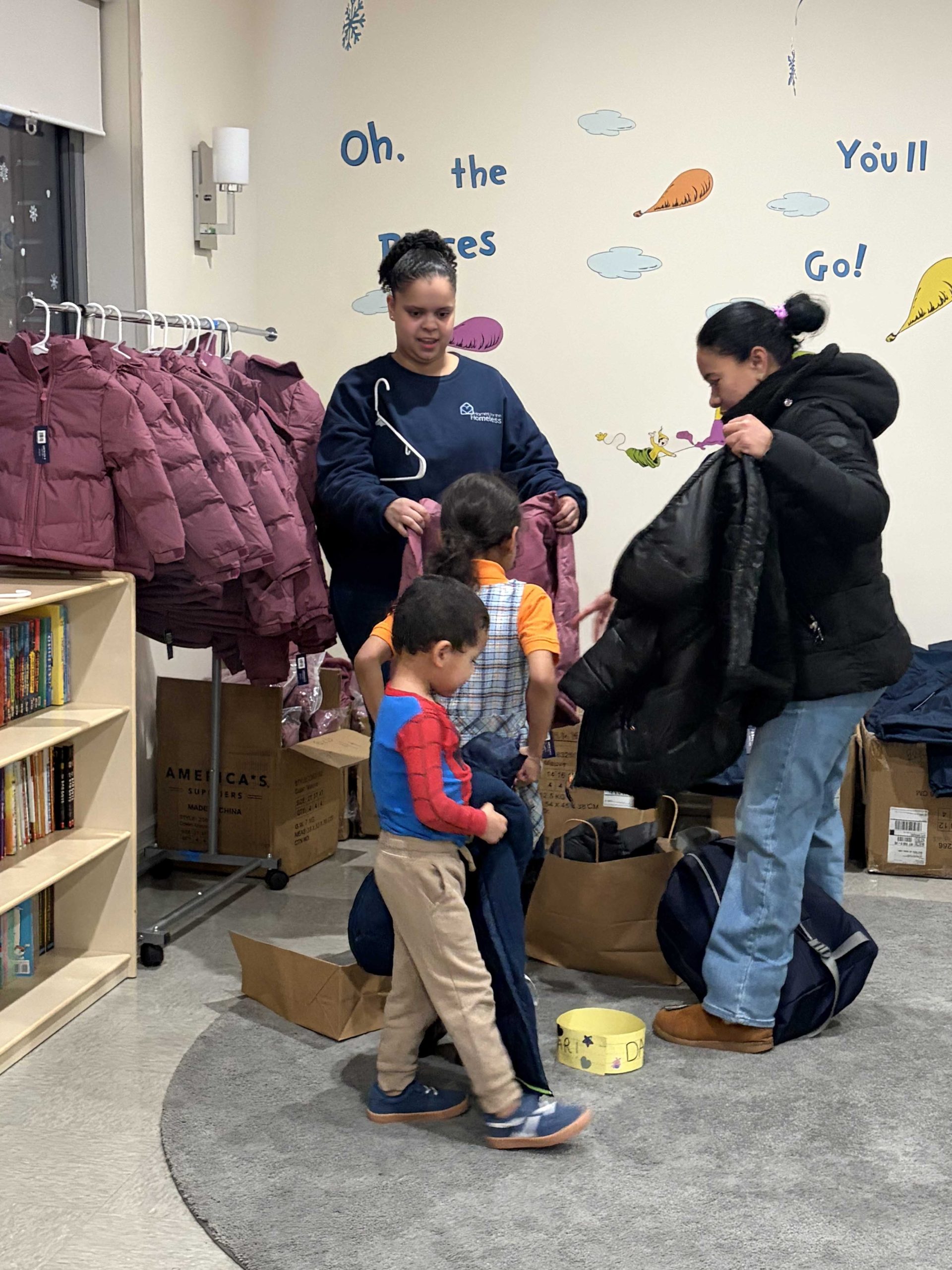 Families at Clinton Family Residence also benefited from a recent coat drive hosted by our neighbors at OneCo HK. Their support created a welcoming coat closet experience for parents and kids, filled with winter coats of all sizes that families could browse, try on, and choose from—making sure everyone found something that fit just right. OneCo HK has supported families at Clinton since before the site opened and continues to show up in ways that help families feel welcomed in the community.