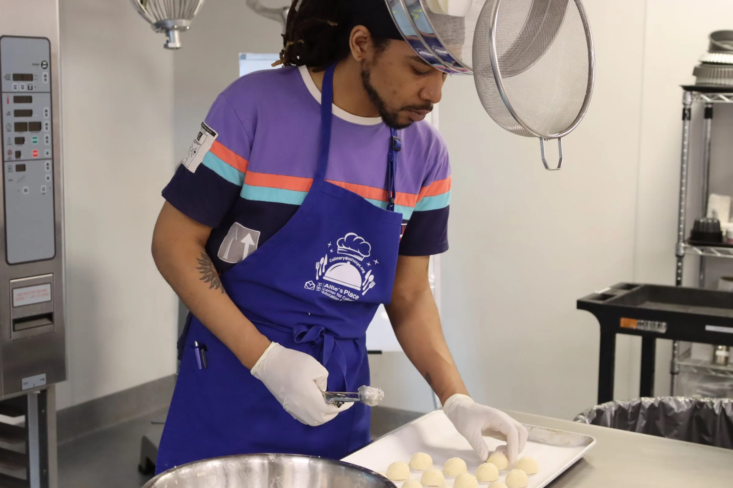 Although she had food service experience out of state, Taywana Williams was unemployed when she came to Allie’s Place Center for Culinary Education & Employment in search of support reentering the culinary field in New York. She enrolled in Culinary Essentials and Pastry Arts during the summer of 2024, completed her NYC Food Protection Certificate, and built on her skills through additional workshops at the Center. With support from the on-site Employment Coordinator, Taywana secured a full-time job just one month after graduating—becoming a Cook at Columbia Grammar and Preparatory School through FLIK Independent School Dining. There, she prepares healthy meals ranging from salads and sandwiches to vegan lasagna. Now one year into her role, Taywana returned to Allie’s Place in June 2025 to take the newly launched Hospitality program and continue growing in her career. (7/28/25)